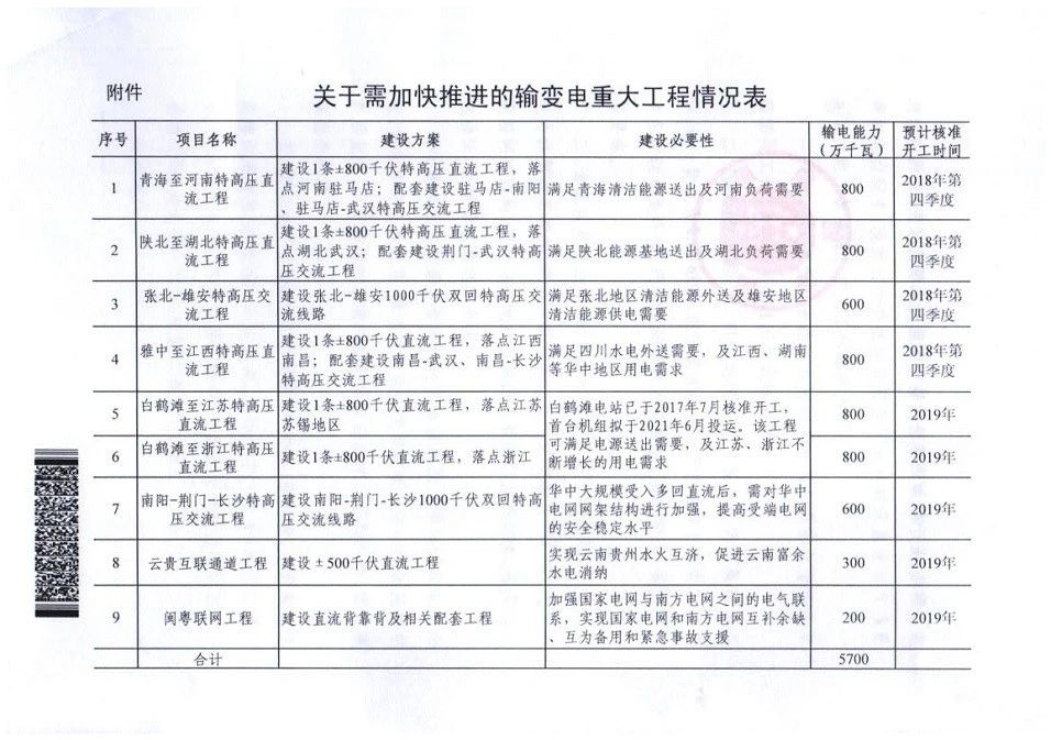 On September 3, 2018, the National Energy Administration issued the notice on accelerating the planning and construction of a number of key power transmission and transformation projects (gndf [2018] No. 70), proposing to approve 12 UHV lines from the fourth quarter of 2018 to the end of 2019.