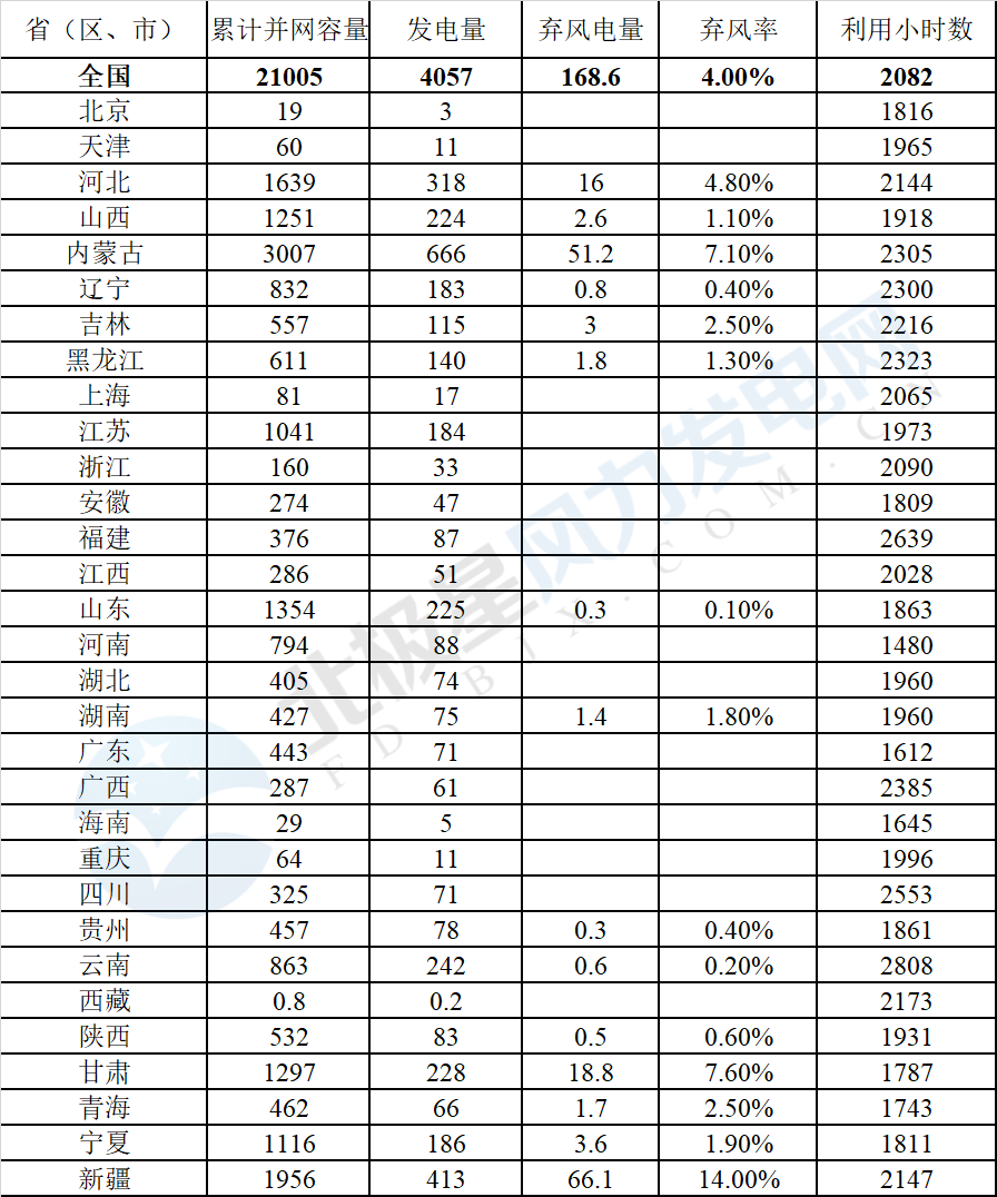 3. The wind energy and wind rejection rate are from the national renewable energy center and relevant grid enterprises. The blank data indicates that there is no wind abandonment.