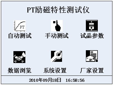 1) Automatic test: in this test item, the automatic excitation characteristic test can be carried out according to the preset setting.