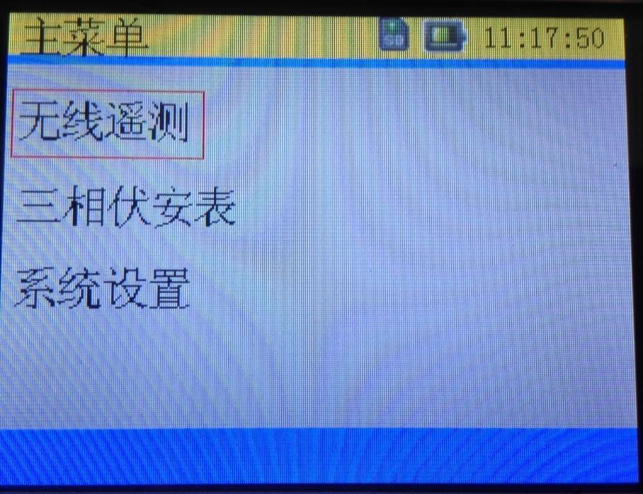 After the instrument is powered on, enter the "main menu" page. Under the "main menu" page, use the ←, → direction key to move the selection box on the screen to the required function, and press enter to enter the function.