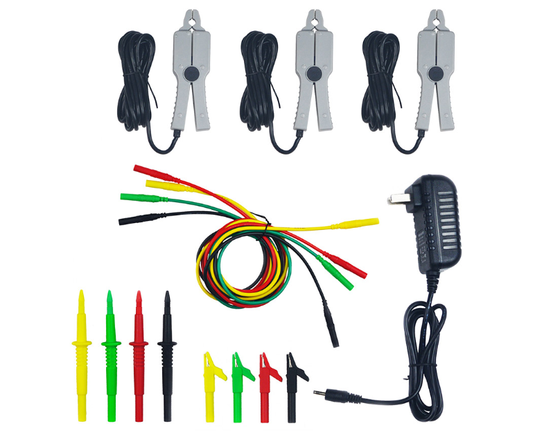 The arrow on the side of the current clamp indicates the current direction. Clamp I1, I2 and I3 current clamps (the color circle on the clamp line is yellow, green and red in turn) onto a, B and C three-phase phase lines; if only one current needs to be measured, clamp I1 current onto the current line; if two current needs to be measured, clamp I1 and I2 current onto the current line to be measured.