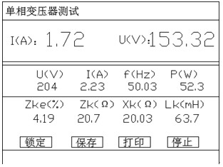 When using external power supply, the voltage regulator should be used to pressurize manually. The upper part of the test interface displays the current voltage and current value in real time. When the current is close to the set test current, the speed of voltage regulation should be slowed down. For single-phase transformer, when the preset current is reached, there will be an audio prompt and the current result will be automatically locked. The single-phase test result interface as shown in Fig. 4 will be displayed.