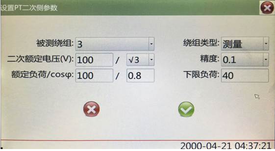 Winding to be tested: the current serial number of secondary winding to be tested, the maximum value is 5, if only one winding of PT is set as 1;