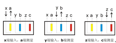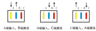 The input impedance of sweep signal is connected to neutral point 0, and the output impedance of sweep signal is connected to A, B and C respectively. This measurement method can absorb the interference signal received on the non measurement phase by the low impedance of the signal generator. As shown in Figure 2.