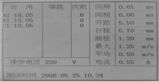 At this time, press the confirm key again, and the instrument will automatically carry out the opening or closing test according to the switch status. The test data is shown in the following figure:
