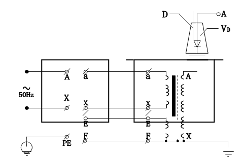 5. The wiring schematic diagram of test transformer during DC withstand voltage or leakage test of test object is shown in Fig. 7.