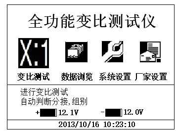 1) Transformation ratio test: in this menu, the transformation ratio, error and angle difference of single-phase transformer and three-phase transformer can be measured.