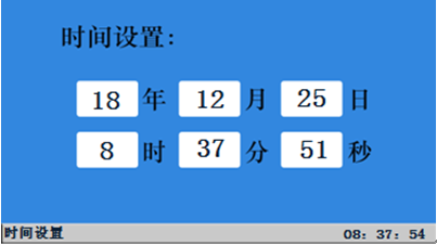 The cursor in the startup interface is located in the clock menu, press the confirm key to enter, press the left and right keys to select year, month, day, hour, minute and second, and press the up and down keys to increase or decrease the data. The time setting interface is shown in the following figure: