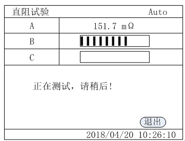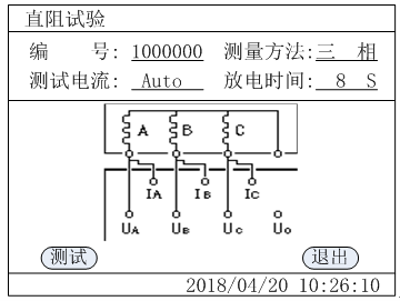 After all three-phase tests are completed, the DC resistance test results as shown in the following figure are displayed: