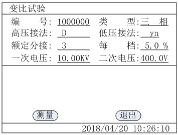 1. In the above figure, select "measure" with the cursor, and press the confirm key to enter into the following automatic step-up page of variable ratio test: