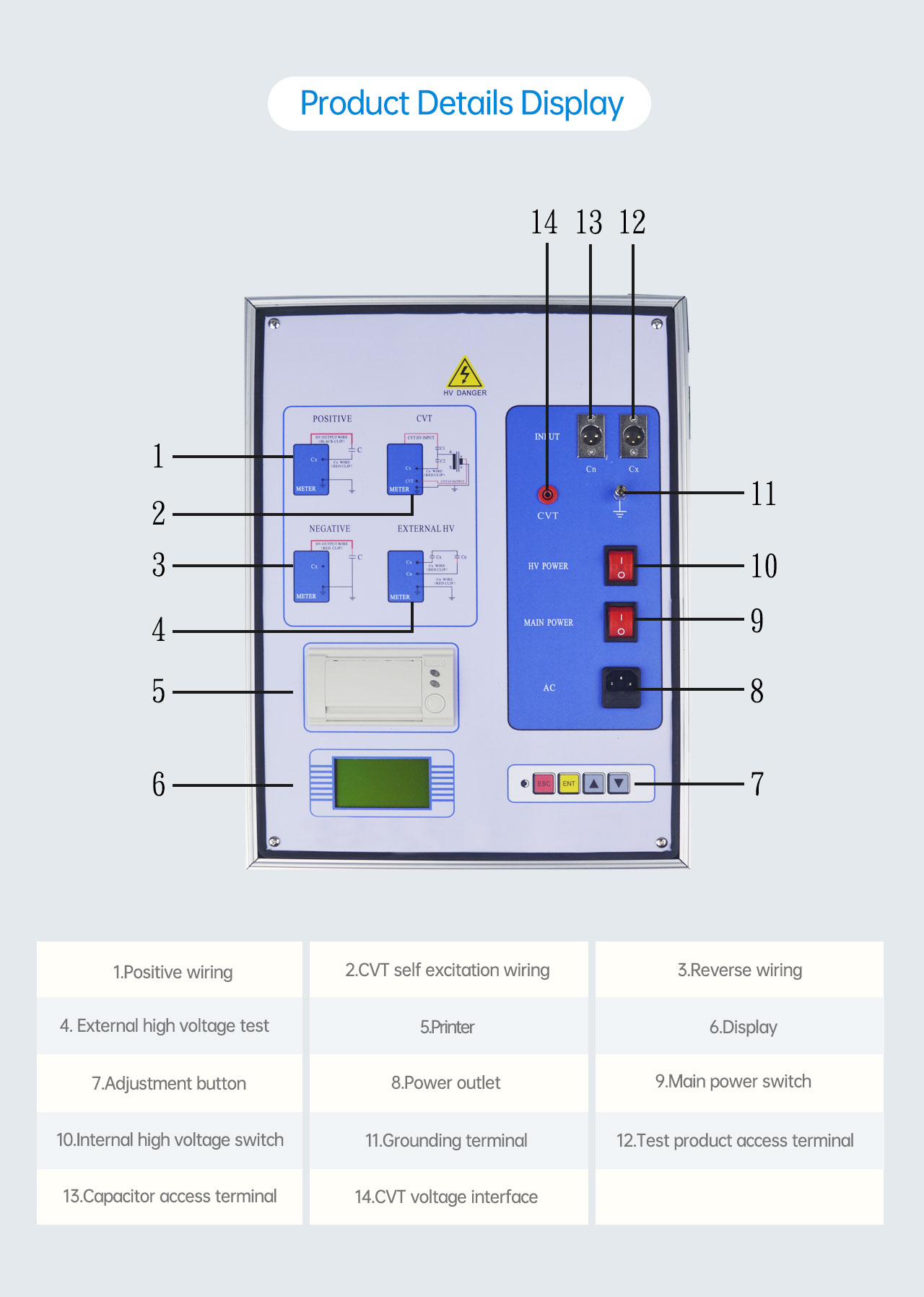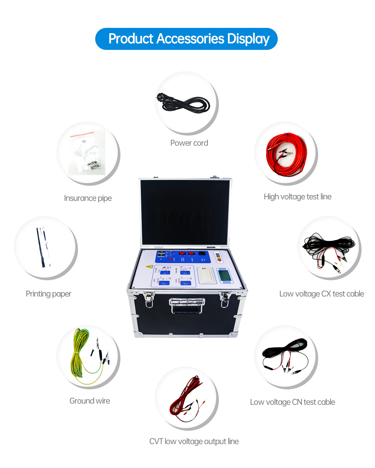 7. With CVT test function, the self excitation test of CVT can be realized without external accessories, only one-time measurement is needed, and the capacitance and dielectric loss of C1C2 are all measured.