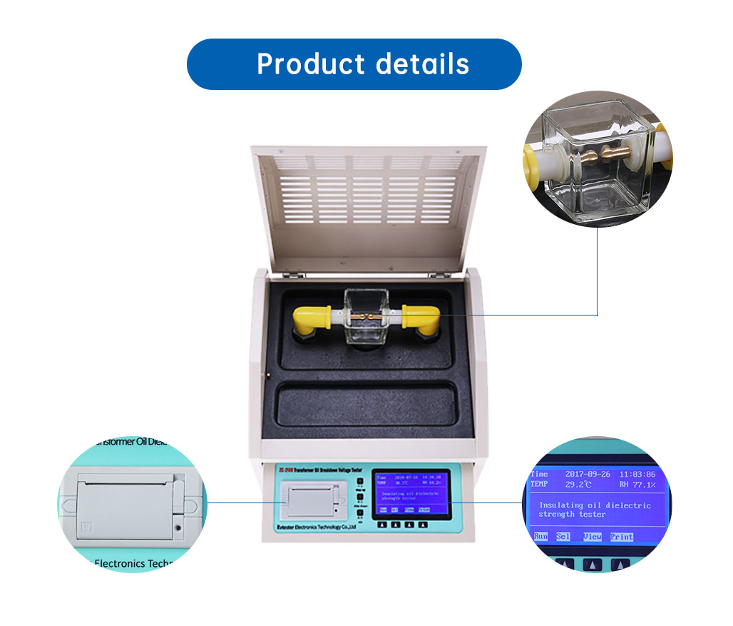 This transformer tester was designed on basis of GB-86《Oil-insulating testing》, the process and result displayed by LCD, built-in EEPROM , can save 100 groups test results, all work can finished by mouse, test results printed by micro printer. This equipment is easy to operate, with powerful functions, stable and reliable, with strong anti-jamming ability, without death halt during the test.