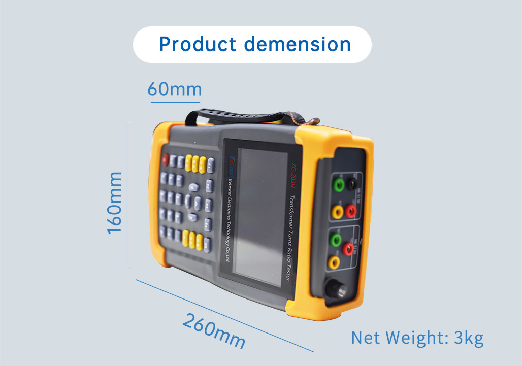 2. Phase angle measurement function: measure the phase angle between high voltage side and low voltage side. Measure the turn ratio and angle of“Non integral point”transformer.