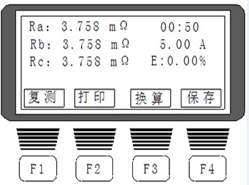 (4) After the "save" function of the DC resistance tester is displayed as shown in Fig. 1-1 and Fig. 1-2, press the "save" function key to save the measured data and the time of test saving. If there is oil temperature input, the conversion result will be saved. After saving, it will display "save completed! "Then return to the previous interface. The saved data can be viewed through the "access" function key in the main interface of power on.