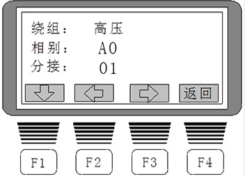 (3) After the "print" function is displayed as shown in Figure 1-1 and Figure 1-2, press the "print" function key to display the prompt: "Edit? "Select" no "to print the display data" and "return to the previous test interface". Select "yes" to display as shown in Figure 1-4. Input the winding, phase and tap correctly, and then press the "return" key to display the prompt: "Edit? "Select" no "to print the display data" and "return to the previous test interface". Select Yes to edit again. If there is oil temperature input, the conversion result will be printed. Note that "phase difference" cannot be entered under three channel test.