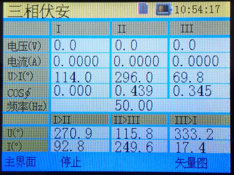 This function of zc-630 hand-held three-phase harmonic analyzer is used to measure the basic parameters of three-phase voltage and three-phase current. Specific parameters include three-phase voltage effective value, three-phase current effective value, frequency and three-phase voltage, current, voltage and current phase, power factor. The interface is shown in Figure 3: