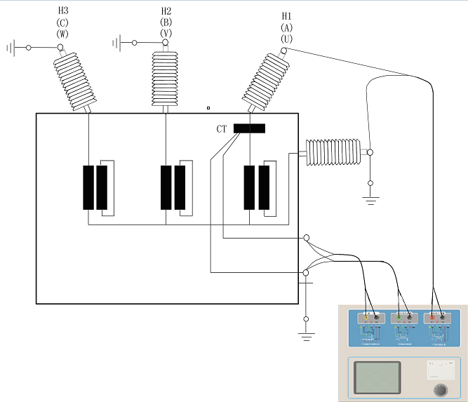 Note: the primary terminal H1 cannot be grounded, otherwise the primary side is grounded, then the tester cannot obtain the correct results.