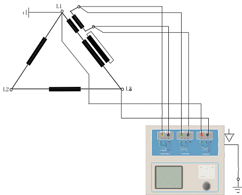 Figure C.2 Wiring mode of tester when testing on triangle connection transformer