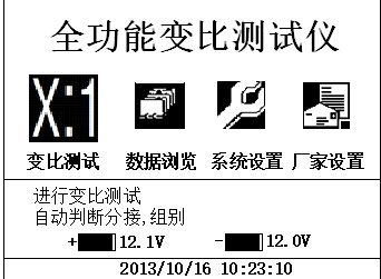 3) In the above figure, select "measure" with the cursor, and press the confirm key to enter into the following automatic step-up page of variable ratio test: