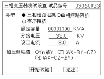 Among them, the rated capacity and tap voltage must be set accurately. For three-phase transformer, the connection mode of the tested transformer must also be set correctly.