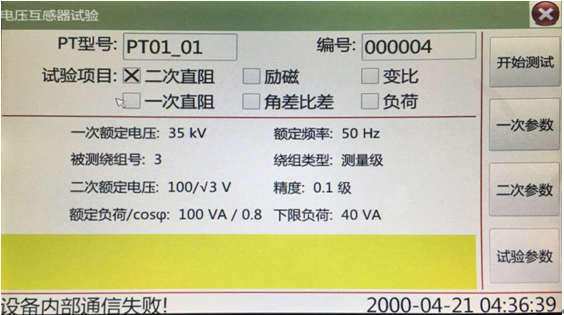 To test the error characteristics of PT, it should be noted that the test process is divided into two steps, the first step is the ratio test, the second part is the angle difference test. |