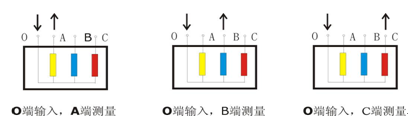 The input impedance is connected to B and the output impedance is connected to the C for test.