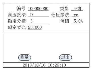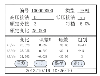 1) Transformation ratio test: in this menu, the transformation ratio, error and angle difference of single-phase transformer and three-phase transformer can be measured.