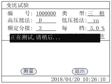 1. In the above figure, select "measure" with the cursor, and press the confirm key to enter into the following automatic step-up page of variable ratio test: