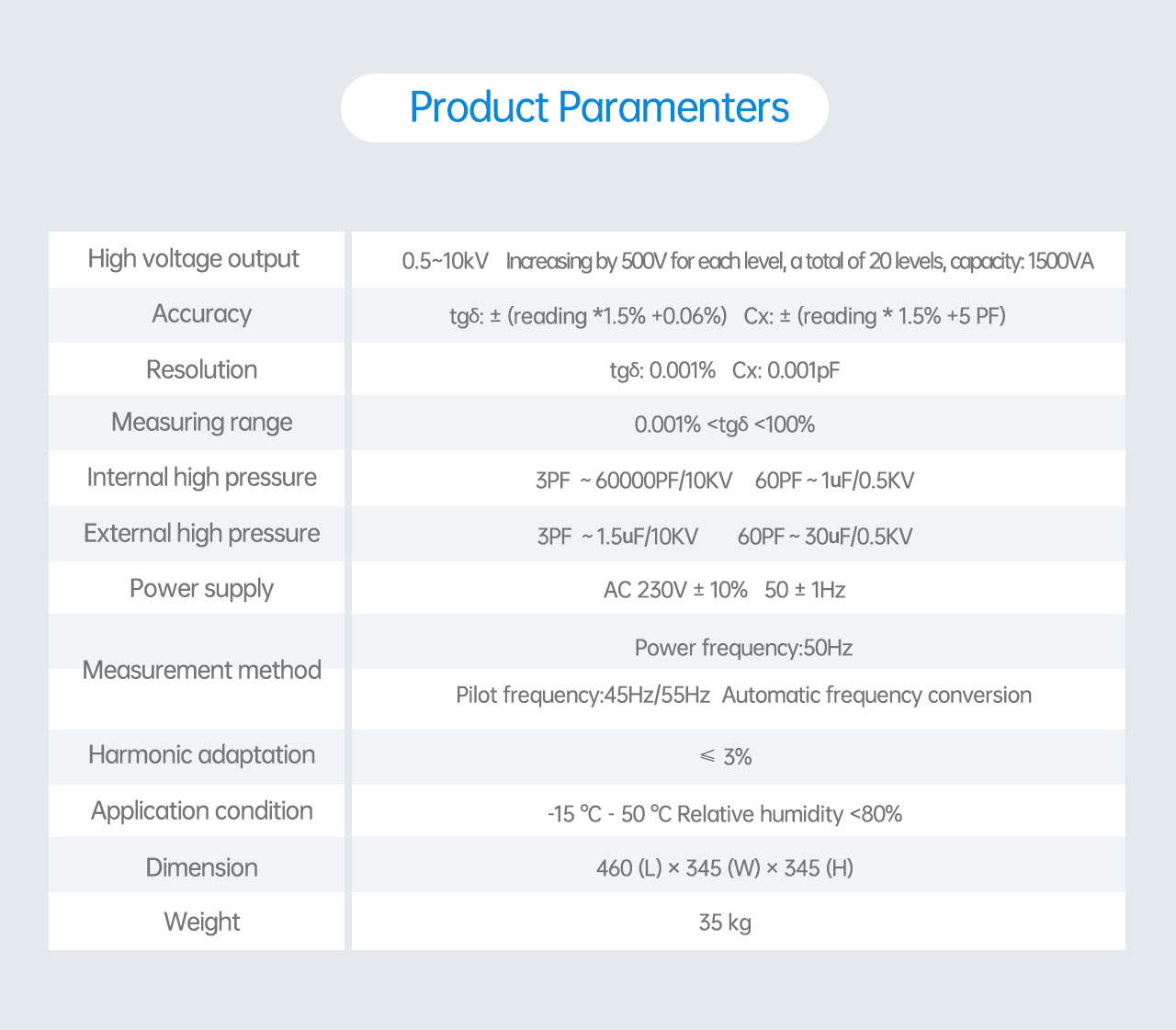 1. The instrument adopts complex current method to measure capacitance, dielectric loss and other parameters. The accuracy of the test results is high and it is easy to realize automatic measurement.