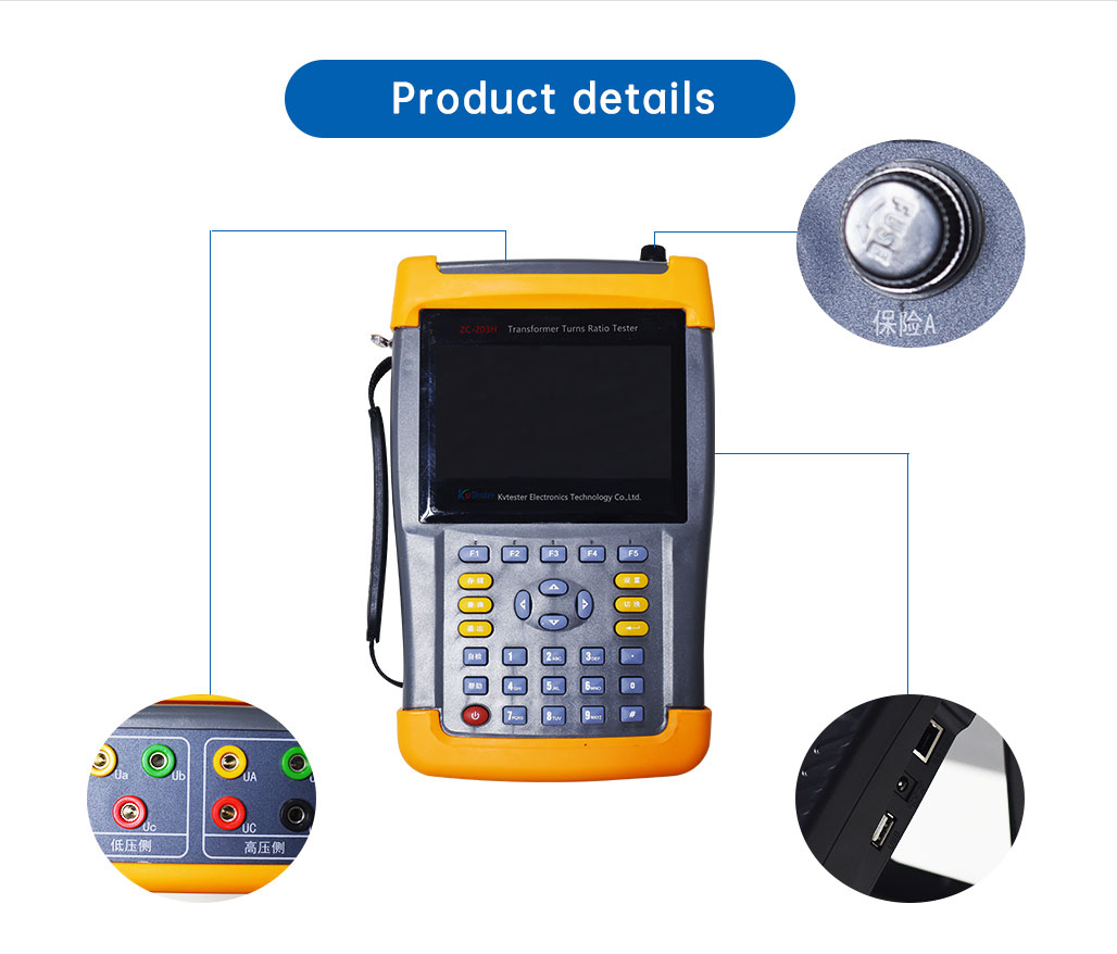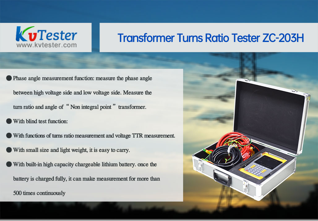 2. Phase angle measurement function: measure the phase angle between high voltage side and low voltage side. Measure the turn ratio and angle of“Non integral point”transformer.